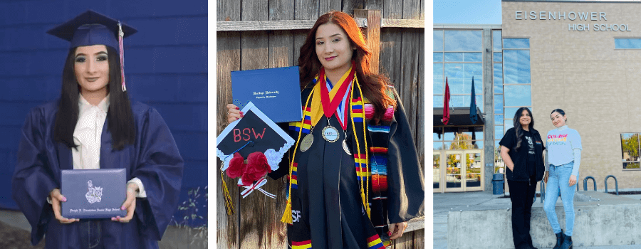 Elvia still remembers the day a morning announcement at Eisenhower High School changed her life. As a senior, balancing classes and night shifts, she “landed in CSF Advisor Yolanda’s office out of curiosity.”