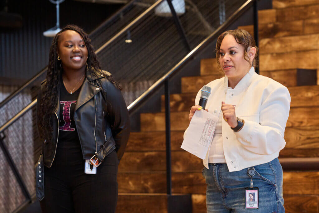 Next, students attended an inspirational career panel with representatives from several departments: creatives, lawyers, accountants, and more. The panelists talked about their career journeys and what they love about their jobs and gave solid advice they wished they had when they were in high school and college. During the panel, a panelist revealed to the students, “My dreams were so much bigger than my obstacles.”